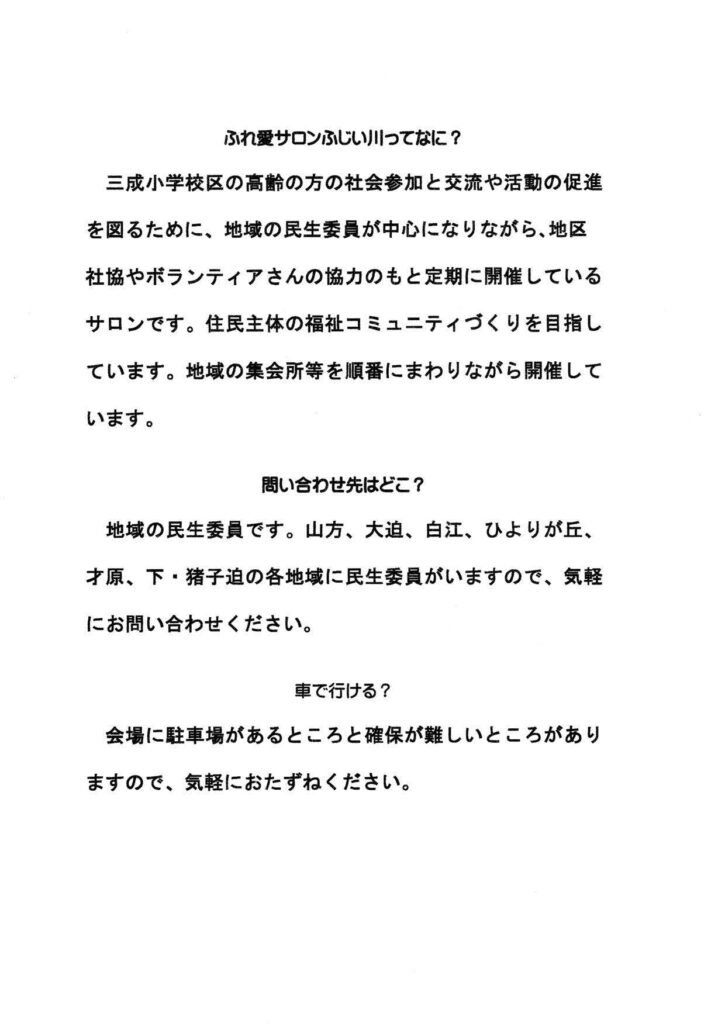 ふれ愛サロンふじい川1月