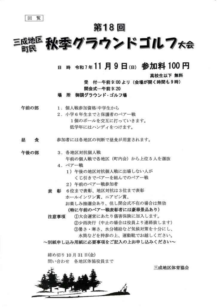 秋季町民グラウンドゴルフ大会を次の要領で実施いたします。