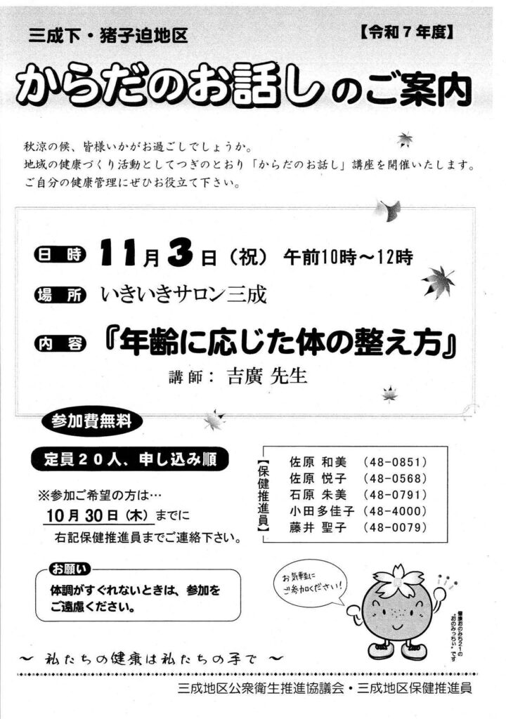 「からだのお話し」のご案内